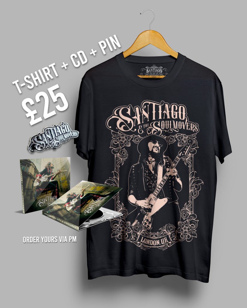 After three years, Santiago embarked on his solo career, releasing two blues albums that opened doors for performances in various countries including Australia, New Zealand, Italy, Mexico, Ecuador, and Brazil. In 2021, Santiago began working on new music with producer Wayne Proctor (AA Williams, Lynne Jackaman, Ben Poole) and co-writer Oli Brown. The new material, yet to be released under the name “Santiago and the Soulmovers,” combines Blues Rock sounds with Soul and Nashville vibes for a fresh twist.